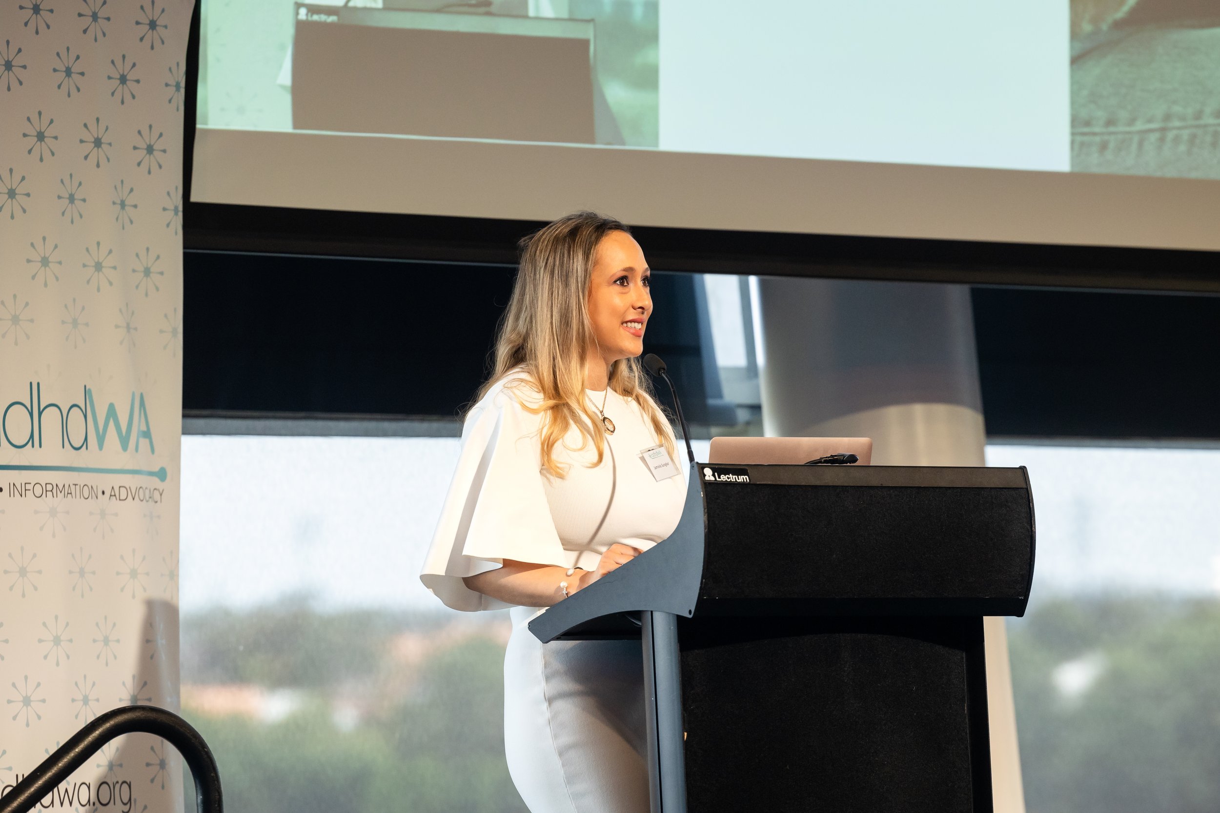 Jamiela was honoured to be a guest speaker at the ADHD WA Conference 2024, themed “Pills Don’t Teach Skills.”